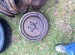 I recently purchase a running gear and folks on another forum suggested that it was manufactured by coop/cockshutt. The running gear came with a lift cylinder. There are no markings in either the running gear or the cylinder. There is residual orange/red paint. I need to replace the wheel rims. The gear had 16" rims with a 5.75 inch bolt circle. This is a non standard bolt circle.